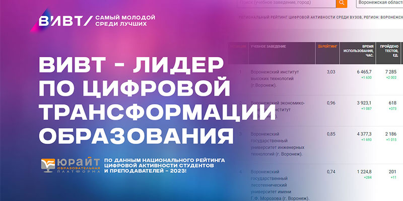 По результатам исследования группы Юрайт. Статистика онлайн-активных образовательных учреждений Воронежский институт высоких технологий становится лидером по цифровой трансформации образования.