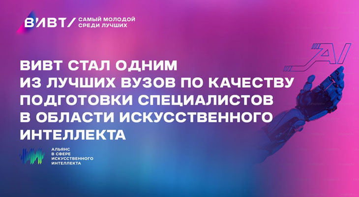 ВИВТ становится одним из лучших вузов по качеству подготовки специалистов в области искусственного интеллекта по результатам рейтинга, разработанного ассоциацией «Альянс в сфере искусственного интеллекта».