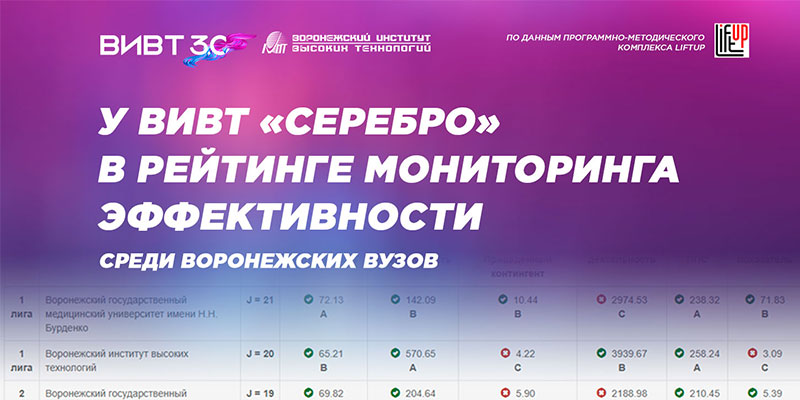 Воронежский институт высоких технологий снова попадает в ТОП-5 вузов Воронежской области.
