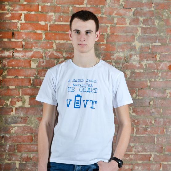 Футболка с принтом «У нашей любви батарейка не сядет»